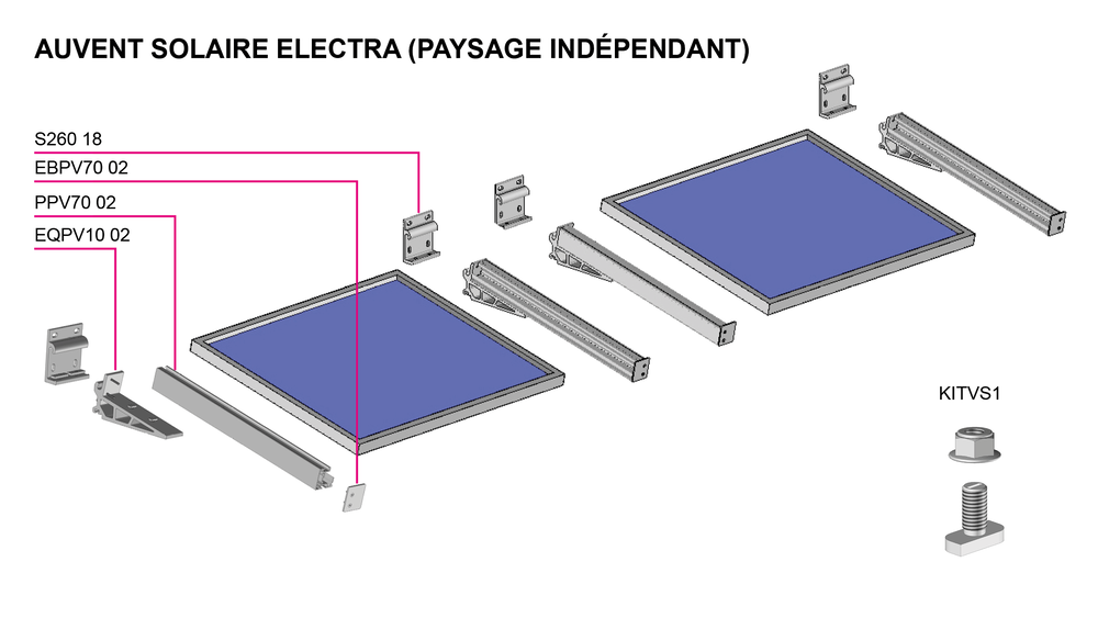• L'installation indépendante de l'auvent solaire Electra permet une compatibilité avec divers cadre de panneaux et le montage de panneaux jusqu'à 2,2 mètres de long.