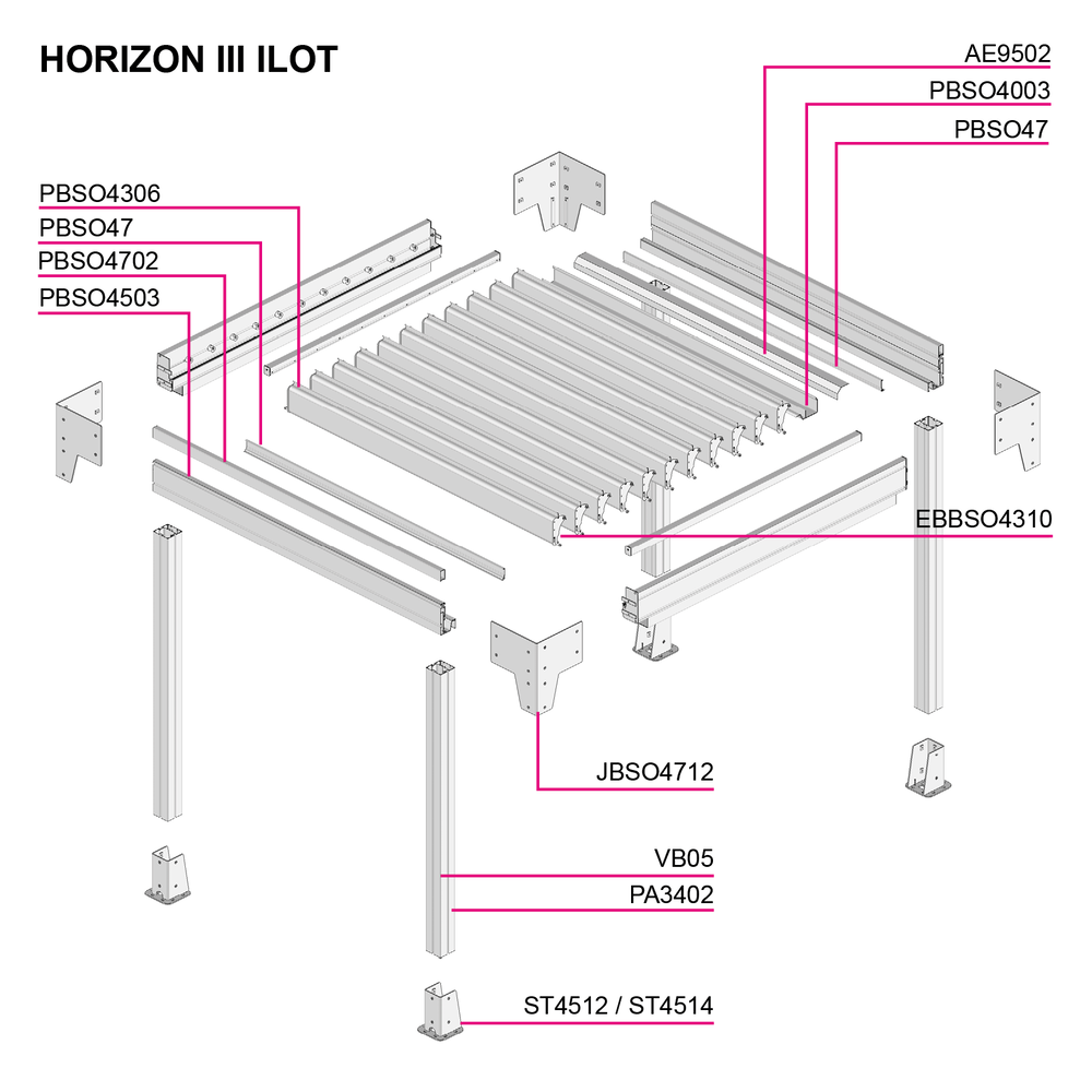 Hauteur par défaut : 2500mm. Pour une hauteur supplémentaire un manchon TAC80x60 est obligatoire par pied.