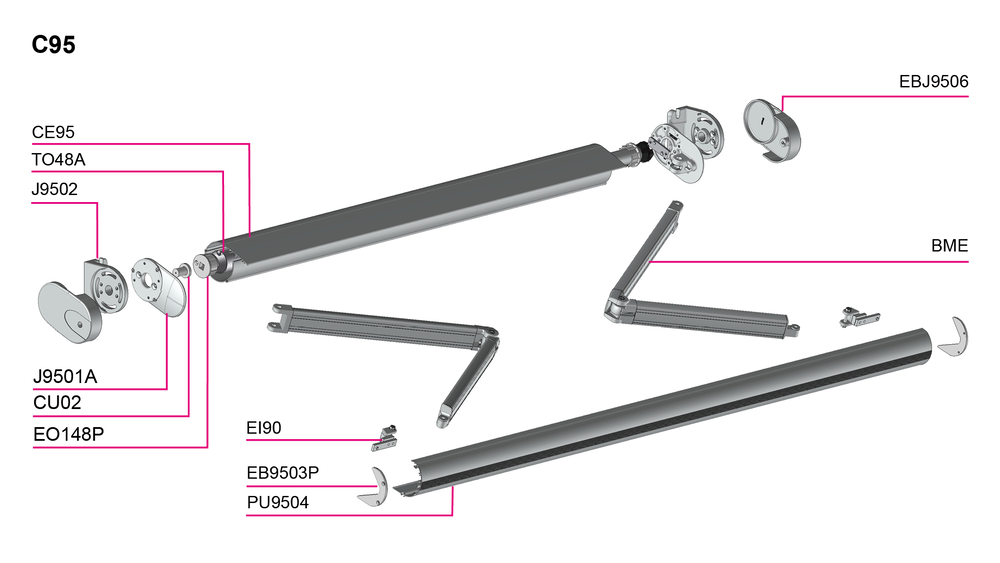 • Store prémonté : le coffre C95 regroupe enroulement et bras, réduisant fortement le temps d'installation.