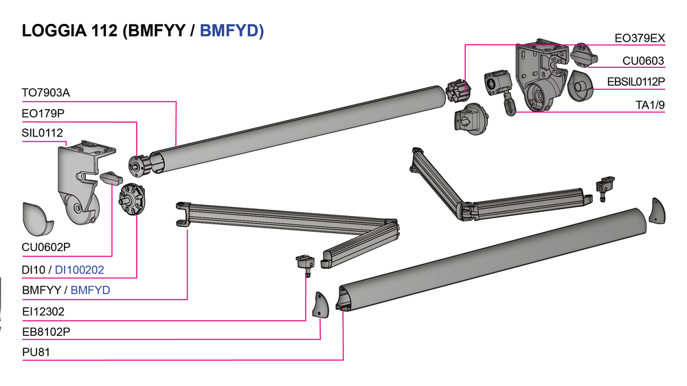 • Nouveau bras BMFYD équipé d’un ressort de traction, assurant une tension constante de la toile et une stabilité renforcée en position ouverte.